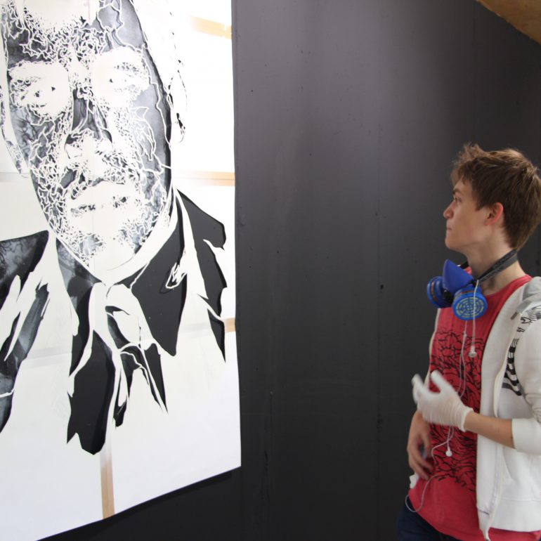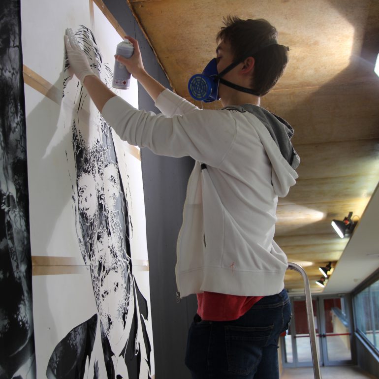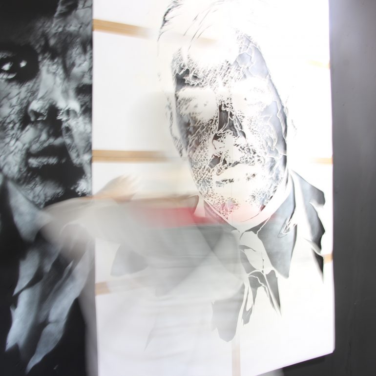 Domènec Montané presenta una reflexió al voltant del concepte de la imatge i la seva preponderància en el món contemporani. El flux constant d’imatges que ens arriben contínuament i es fa impossible de digerir. El projecte està concebut en tres actes. En el primer, a mode d’introducció, es presenten dues pintures de gran format sobre tela que deixen veure la manipulació de la imatge, a partir d’imatges púbiques que l’autor se’n apropia, concretament extretes de la xarxa Instagram, el joc de transparències que permet la deformació de les imatges originals i l’aparició d’elements pictòrics arcaics. Montané parteix d’una premissa actual que afirma “Ja no es pot pintar” i ho planteja com un acte de resistència. El segon acte estarà ocupat per una pintura mural, realitzada amb tècniques de l’art urbà amb una dimensió més pictòrica que reflecteix la multiplicitat i la superposició d’imatges presentada com una cronofotografia. Es tracta del retrat d’un dels personatges més emblemàtics del segle XX, que es torna anònim quan apareix allunyat dels elements amb que la nostra mirada l’ha associat sempre, la imatge icona. El tercer acte acull una manera de treballar molt més lúdica i juguesca. Es tornen a presentar teles amb una nova lectura en forma de díptics, que segueixen d’una manera més lliure l’aprofundiment en la “fúria de les imatges” expressió encunyada pel teòric i fotògraf Joan Fontcuberta que dóna títol al seu últim llibre.