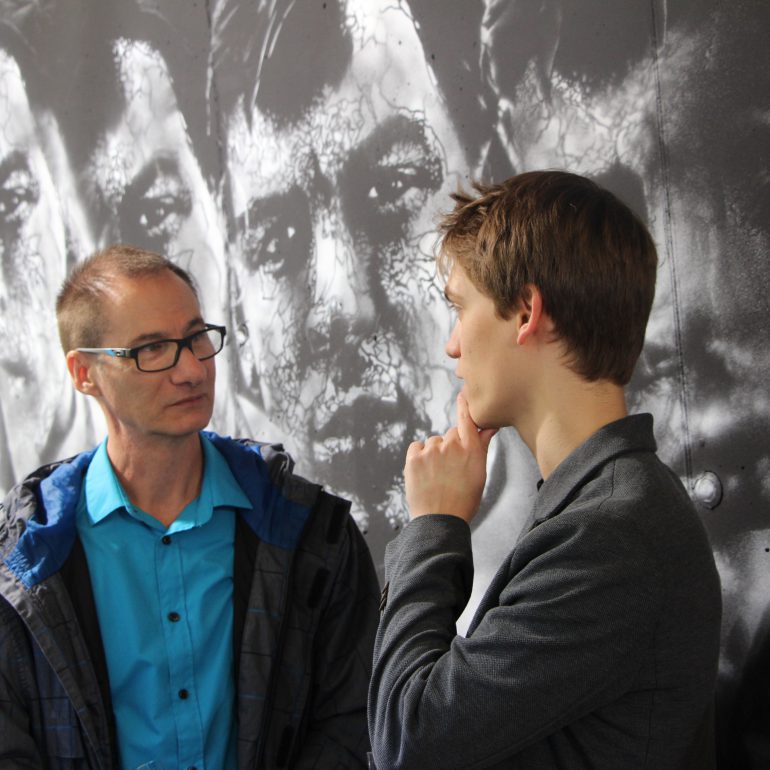 A través d’una intervenció artística de Domènec Montané dotem de significat un espai de trànsit, de pas, d’ús públic. Un espai reversible de dues direccions, habitualment transitat per infants. Es tracta del passadís interior de l’edifici Prat de Call, per on passa el camí escolar, ubicat sota el parc infantil que dóna accés a l’Escola. La intenció i la mirada de l’artista transmuta l’espai a ulls del transeünt que esdevé espectador.